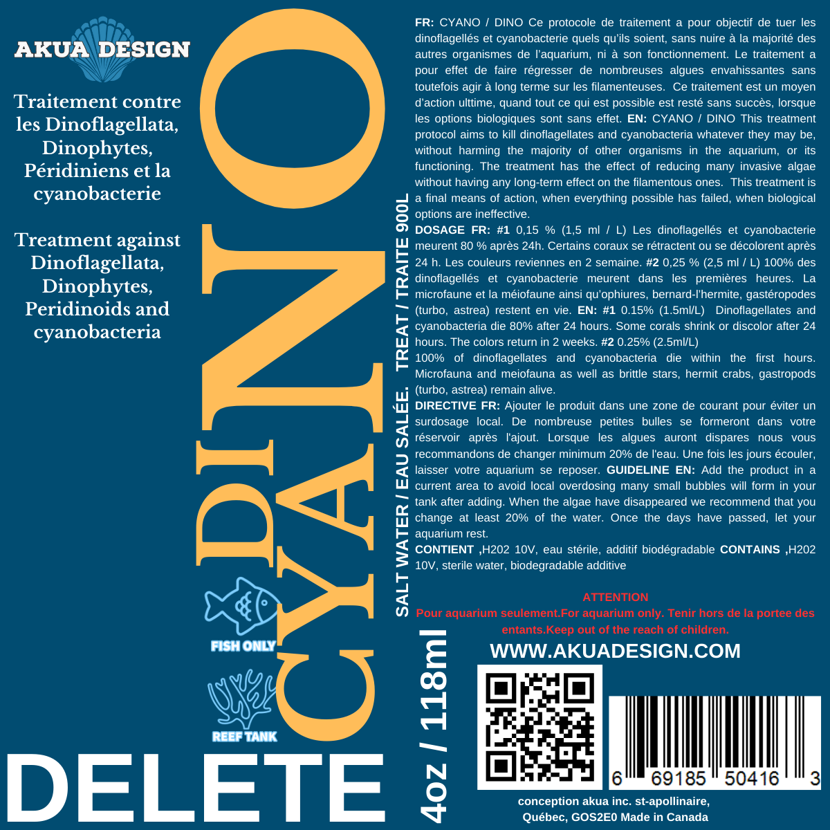 CYANO / DINO Ce protocole de traitement a pour objectif de tuer les dinoflagellés et cyanobacterie quels qu'ils soient, sans nuire à la majorité des autres organismes de l'aquarium, ni à son fonctionnement. Le traitement a pour effet de faire régresser de nombreuses algues envahissantes sans toutefois agir à long terme sur les filamenteuses. Ce traitement est un moyen d'action ultime, quand tout ce qui est possible est resté sans succès, lorsque les options biologiques sont sans effet